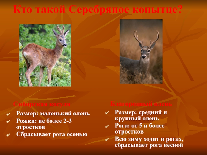 Размер: средний и крупный олень