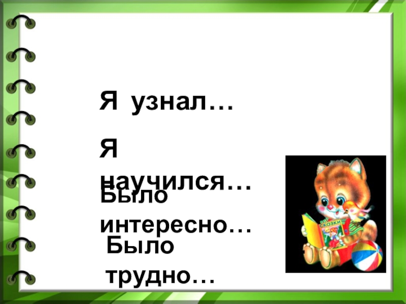 СЕГОДНЯ НА УРОКЕБыло интересно…Я научился…Я узнал… Было трудно…