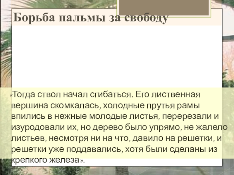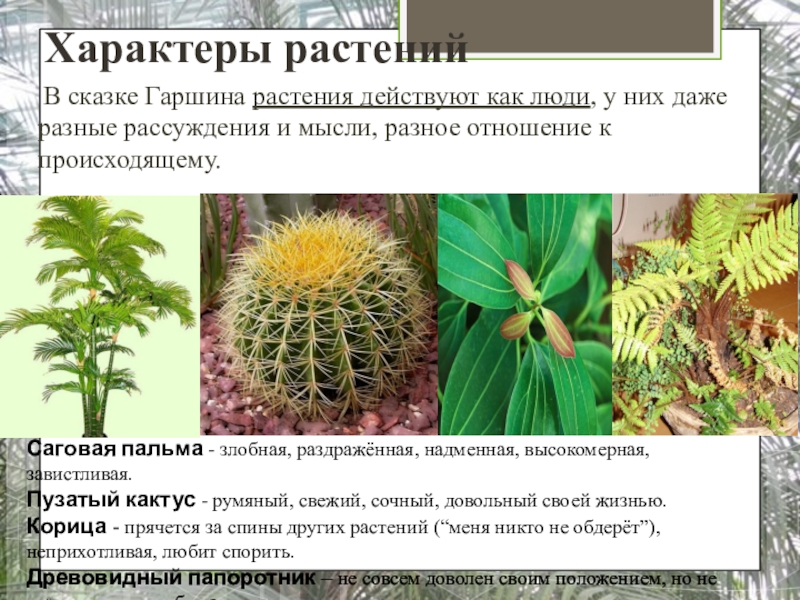 Саговая пальма - злобная, раздражённая, надменная, высокомерная, завистливая.