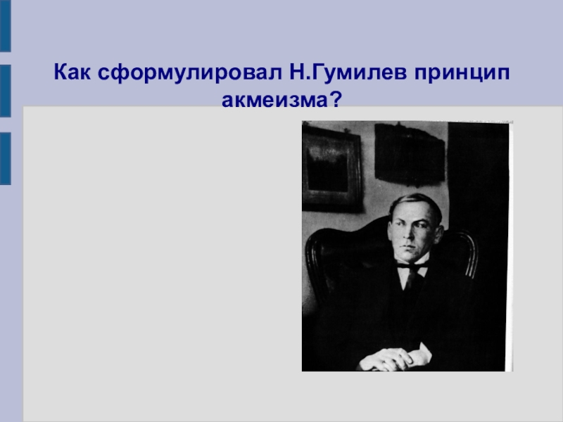 Слайд 19Как сформулировал Н.Гумилев принцип акмеизма?