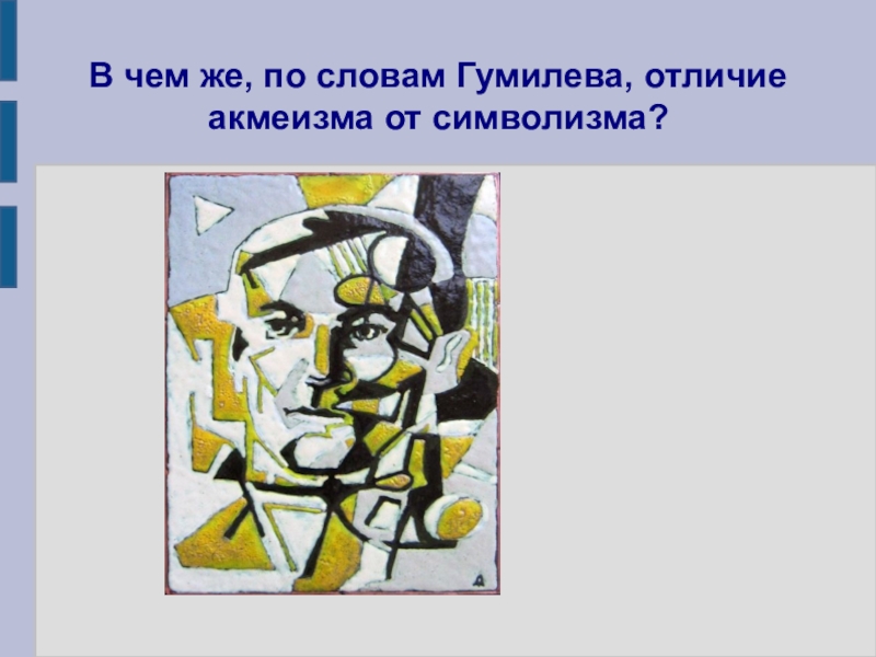 Слайд 17В чем же, по словам Гумилева, отличие акмеизма от символизма?