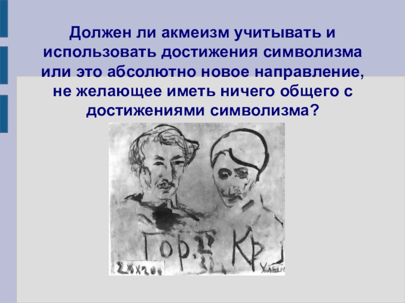 Слайд 9Должен ли акмеизм учитывать и использовать достижения символизма или это абсолютно