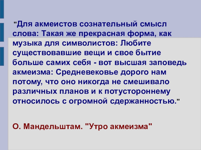 "Для акмеистов сознательный смысл слова: Такая же прекрасная форма, как