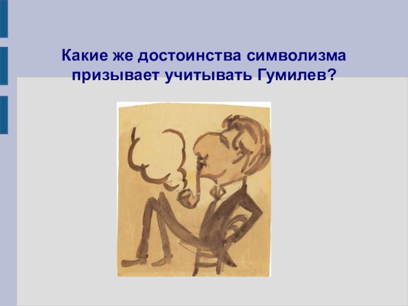 Слайд 11Какие же достоинства символизма призывает учитывать Гумилев?