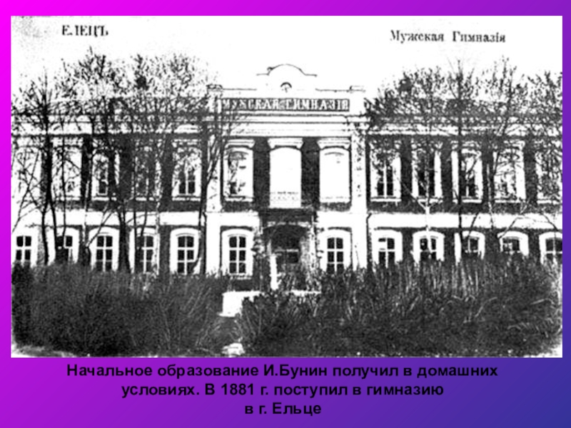 И.Бунин знакомится с Л.Н.Толстым и А.П.Чеховым. В 1895 г. выходит первый рассказ Бунина «На край света»