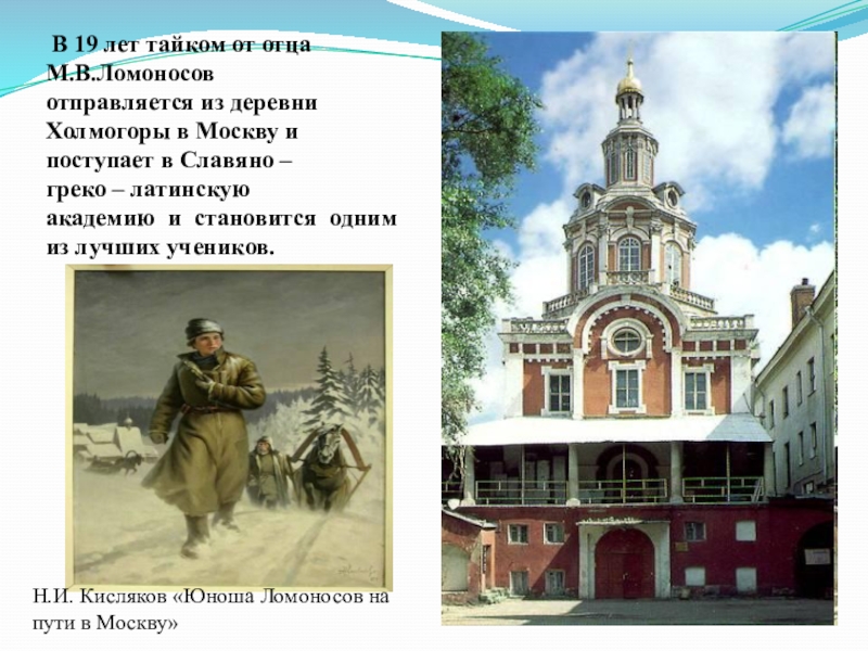 Н.И. Кисляков «Юноша Ломоносов на пути в Москву»