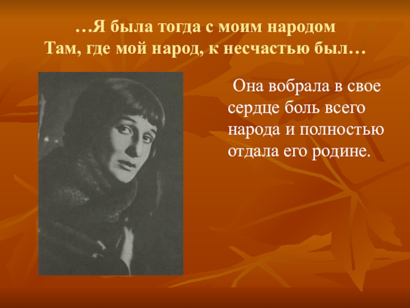 Она вобрала в свое сердце боль всего народа и полностью отдала его родине.