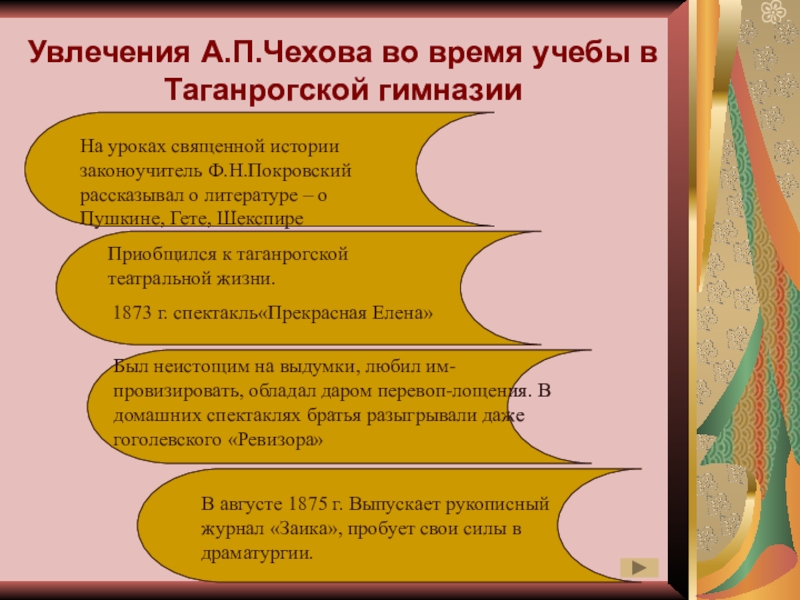 В августе 1875 г. Выпускает рукописный журнал «Заика», пробует свои силы в драматургии.