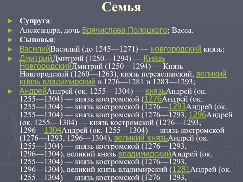 АндрейАндрей (ок. 1255—1304) — князьАндрей (ок. 1255—1304) — князь костромской (1276Андрей (ок. 1255—1304) — князь костромской (1276—1293Андрей (ок. 1255—1304) — князь костромской (1276—1293, 1296Андрей (ок. 1255—1304) — князь костромской (1276—1293, 1296—1304Андрей (ок. 1255—1304) — князь костромской (1276—1293, 1296—1304), великий князьАндрей (ок. 1255—1304) — князь костромской (1276—1293, 1296—1304), великий князь владимирскийАндрей (ок. 1255—1304) — князь костромской (1276—1293, 1296—1304), великий князь владимирский (1281Андрей (ок. 1255—1304) — князь костромской (1276—1293, 1296—1304), великий князь владимирский (1281—1284Андрей (ок. 1255—1304) — князь костромской (1276—1293, 1296—1304), великий князь владимирский (1281—1284, 1292Андрей (ок. 1255—1304) — князь костромской (1276—1293, 1296—1304), великий князь владимирский (1281—1284, 1292—1304Андрей (ок. 1255—1304) — князь костромской (1276—1293, 1296—1304), великий князь владимирский (1281—1284, 1292—1304), князь новгородскийАндрей (ок. 1255—1304) — князь костромской (1276—1293, 1296—1304), великий князь владимирский (1281—1284, 1292—1304), князь новгородский (1281Андрей (ок. 1255—1304) — князь костромской (1276—1293, 1296—1304), великий князь владимирский (1281—1284, 1292—1304), князь новгородский (1281—1285Андрей (ок. 1255—1304) — князь костромской (1276—1293, 1296—1304), великий князь владимирский (1281—1284, 1292—1304), князь новгородский (1281—1285, 1292Андрей (ок. 1255—1304) — князь костромской (1276—1293, 1296—1304), великий князь владимирский (1281—1284, 1292—1304), князь новгородский (1281—1285, 1292—1304Андрей (ок. 1255—1304) — князь костромской (1276—1293, 1296—1304), великий князь владимирский (1281—1284, 1292—1304), князь новгородский (1281—1285, 1292—1304), князь городецкийАндрей (ок. 1255—1304) — князь костромской (1276—1293, 1296—1304), великий князь владимирский (1281—1284, 1292—1304), князь новгородский (1281—1285, 1292—1304), князь городецкий (1264Андрей (ок. 1255—1304) — князь костромской (1276—1293, 1296—1304), великий князь владимирский (1281—1284, 1292—1304), князь новгородский (1281—1285, 1292—1304), князь городецкий (1264—1304);