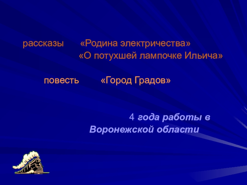 Это сайт презентаций, где можно хранить и обмениваться своими презентациями, докладами, проектами, шаблонами в формате PowerPoint с другими пользователями. Мы помогаем школьникам, студентам, учителям, преподавателям хранить и обмениваться учебными материалами.