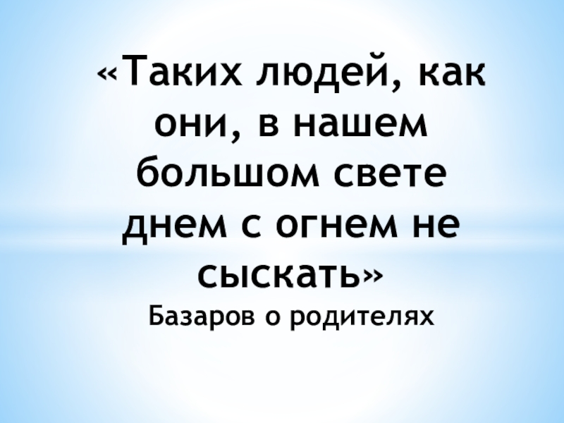 «Таких людей, как они, в нашем большом свете днем с огнем не сыскать» Базаров о родителях