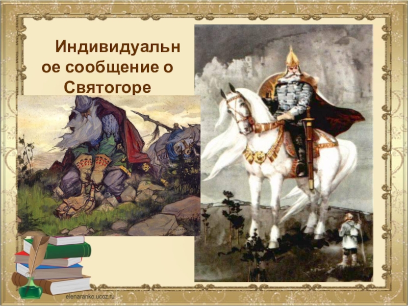 Святогор как мифический богатырь представляет бесплодную непроизводительность горных пород, и, как бесполезная сила, он должен погибнуть, когда люди научились возделывать землю.