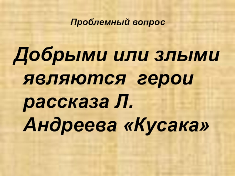 Проблемный вопросДобрыми или злыми являются герои рассказа Л. Андреева «Кусака»