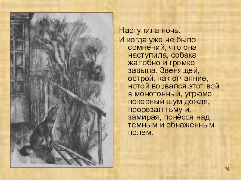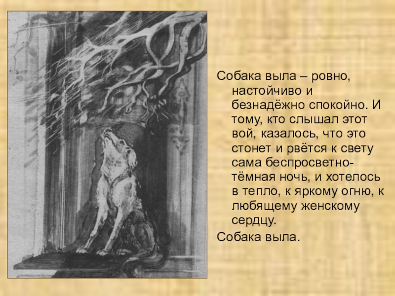 Слайд 17Собака выла – ровно, настойчиво и безнадёжно спокойно. И тому, кто