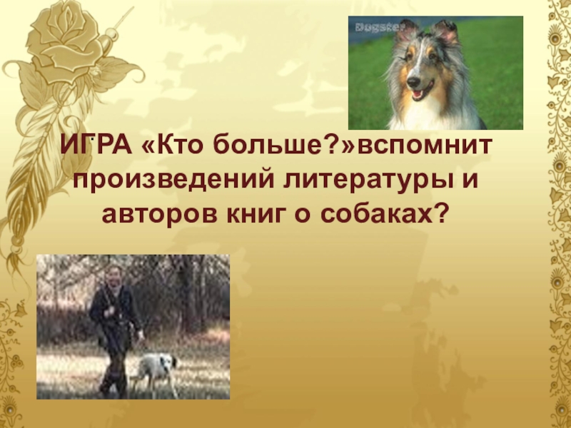 Слайд 13ИГРА «Кто больше?»вспомнит произведений литературы и авторов книг о собаках?