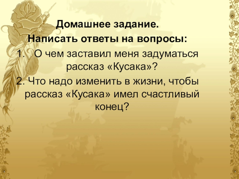 2. Что надо изменить в жизни, чтобы рассказ «Кусака» имел счастливый конец?
