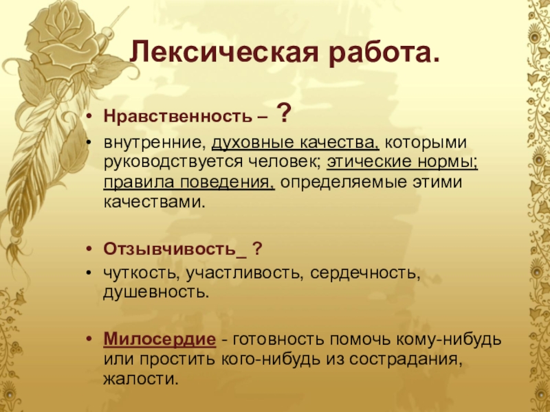 Милосердие - готовность помочь кому-нибудь или простить кого-нибудь из сострадания, жалости.