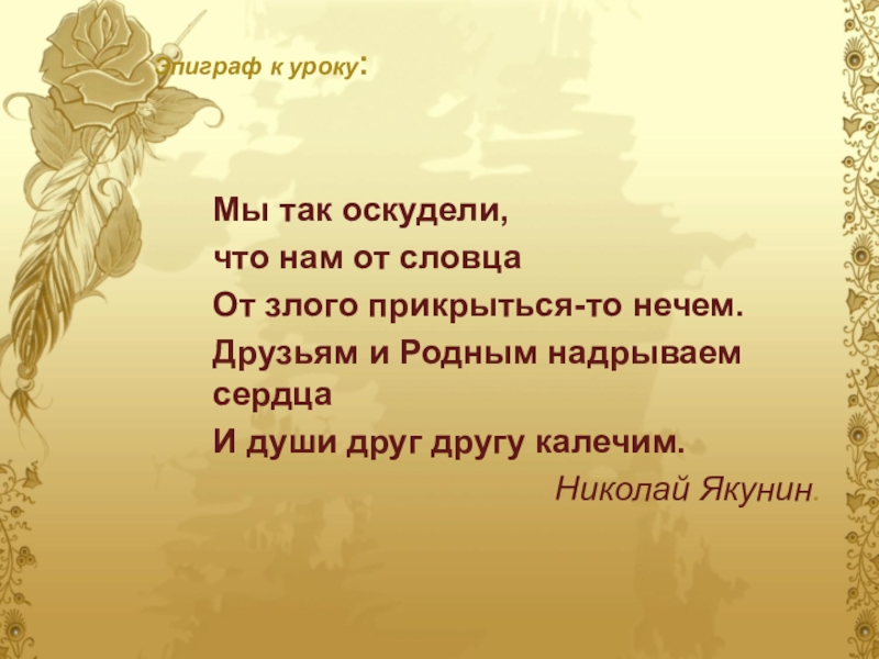 учить видеть нравственную проблему – милосердия - поставленную писателем в своём произведении; - проблему ответственности человека за свои поступки