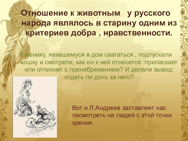 Слайд 11Отношение к животным у русского народа являлось в старину одним