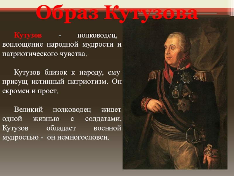 1. Полководец народной войны, воплощение народной мудрости и патриотического чувства