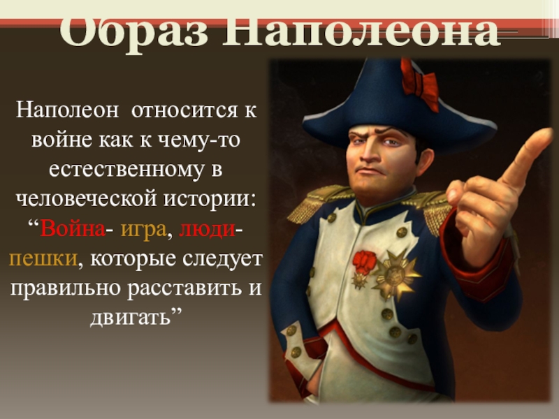 г) война – игра, а люди – пешки, которых следует лишь правильно расставить и правильно двигать