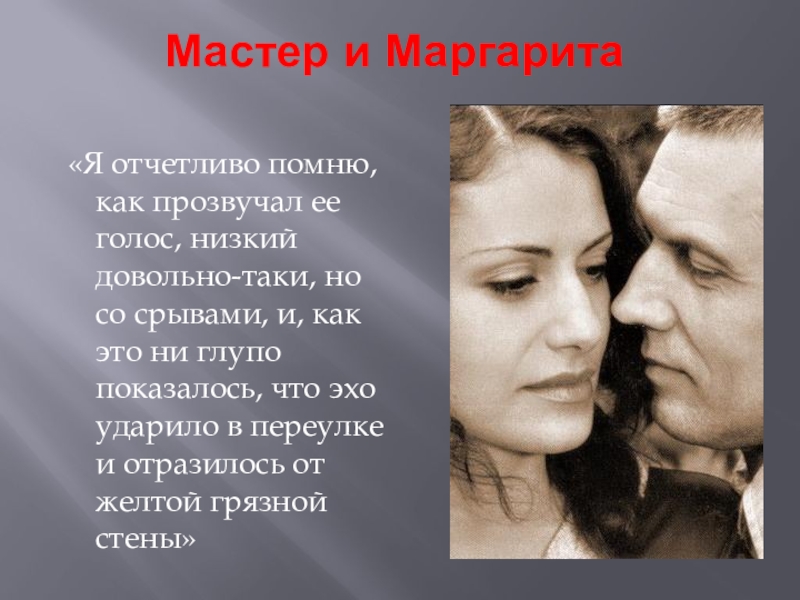 В начале романа Маргарита - подруга Мастера, сострадая возлюбленному,