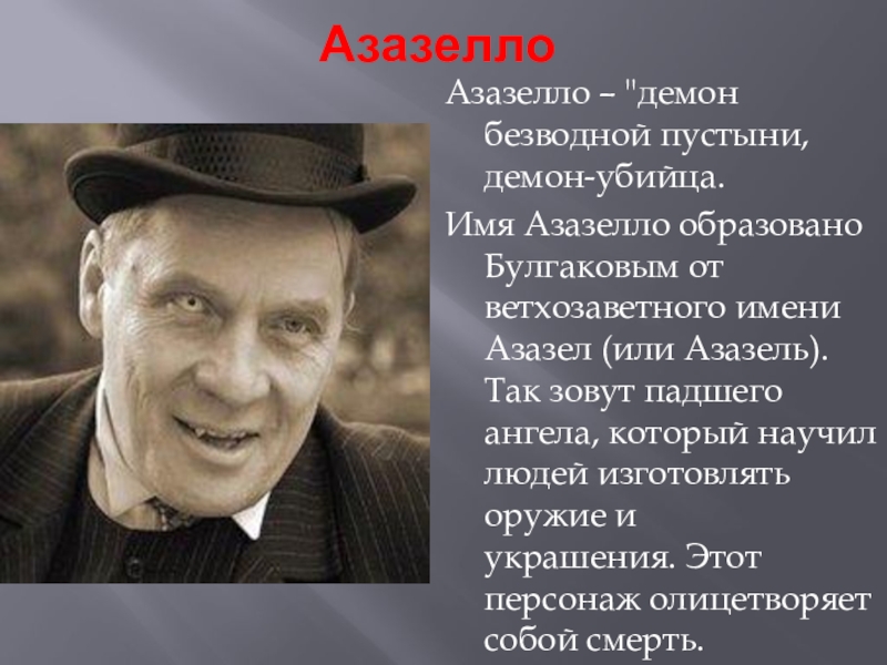 Азазелло – "демон безводной пустыни, демон-убийца.
