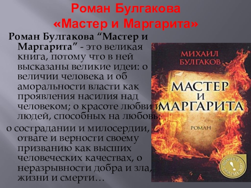 Одной из главных философских проблем романа является проблема взаимоотношения добра и зла. Эта тема всегда занимала ведущее место в русской философии и литературе.