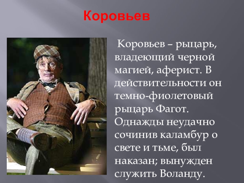 Коровьев – рыцарь, владеющий черной магией, аферист. В действительности