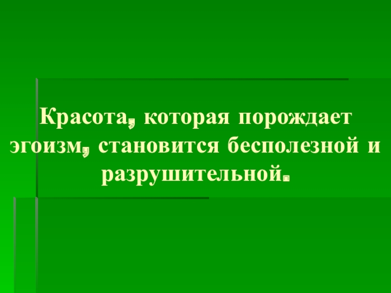 Слайд 18Красота, которая порождает эгоизм, становится бесполезной и разрушительной.