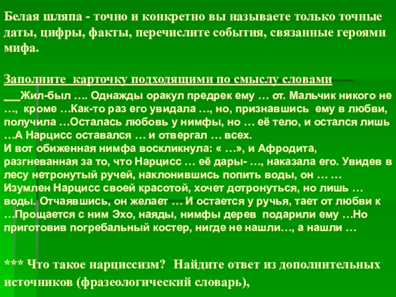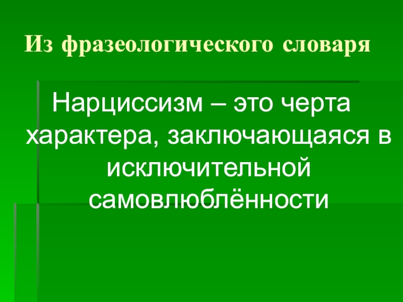 *** Что такое нарциссизм? Найдите ответ из дополнительных источников (фразеологический словарь),