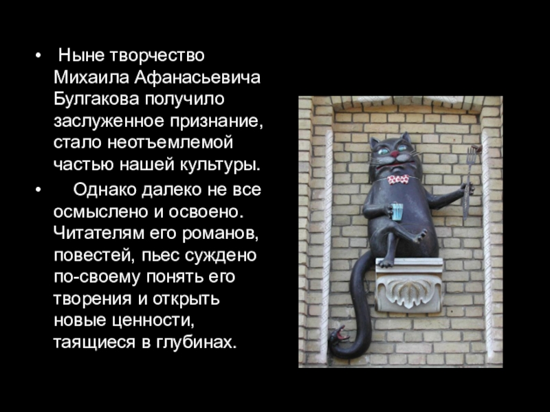 Ныне творчество Михаила Афанасьевича Булгакова получило заслуженное признание, стало неотъемлемой