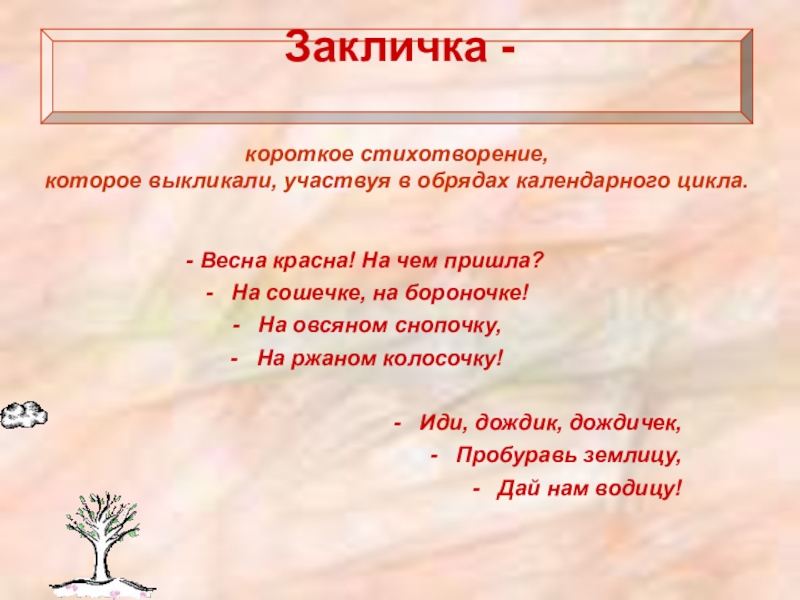 которое произносят в разных случаях, например, обращаясь к живым существам – улитке, божьей коровке, птицам, домашним животным.