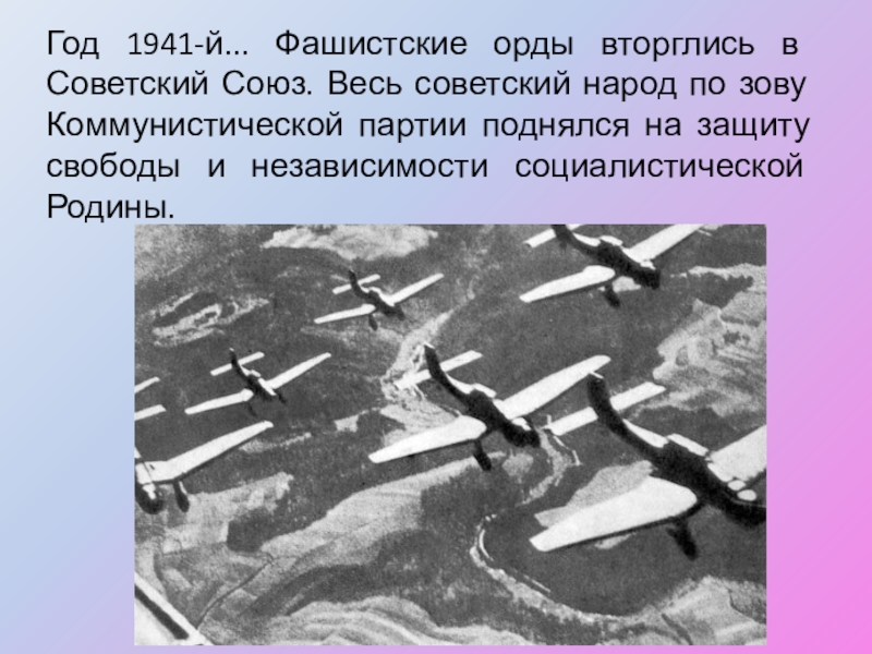 Слайд 3Год 1941-й... Фашистские орды вторглись в Советский Союз. Весь советский народ