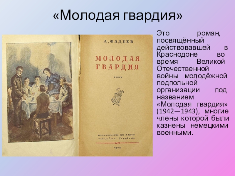 Это роман, посвящённый действовавшей в Краснодоне во время Великой Отечественной