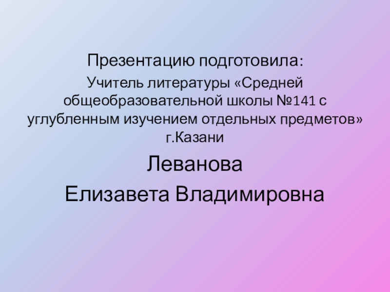 Учитель литературы «Средней общеобразовательной школы №141 с углубленным изучением отдельных
