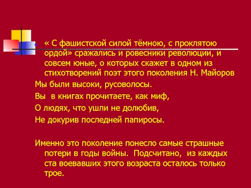 « С фашистской силой тёмною, с проклятою ордой» сражались и ровесники