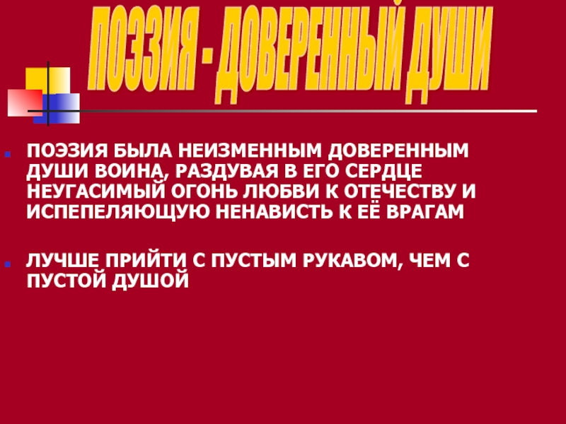 ПОЭЗИЯ БЫЛА НЕИЗМЕННЫМ ДОВЕРЕННЫМ ДУШИ ВОИНА, РАЗДУВАЯ В ЕГО СЕРДЦЕ НЕУГАСИМЫЙ