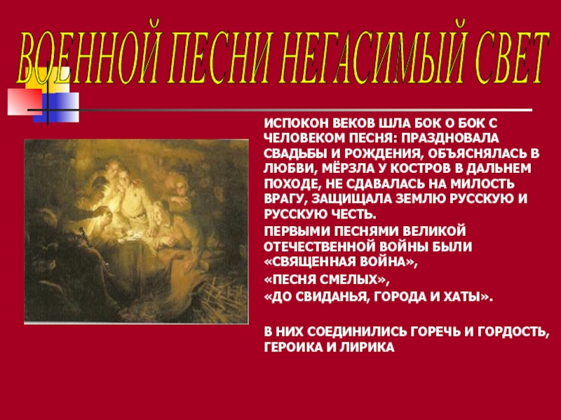 ВОЕННОЙ ПЕСНИ НЕГАСИМЫЙ СВЕТ