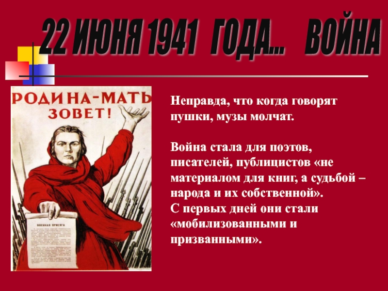 Слайд 5В первый же день войны писатели и поэты Москвы собрались на