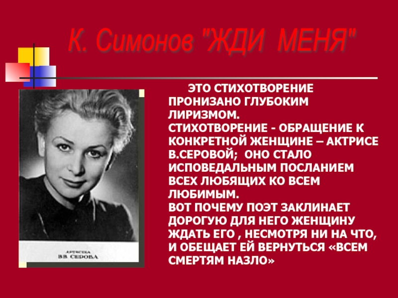 Слайд 10К. Симонов "ЖДИ МЕНЯ"