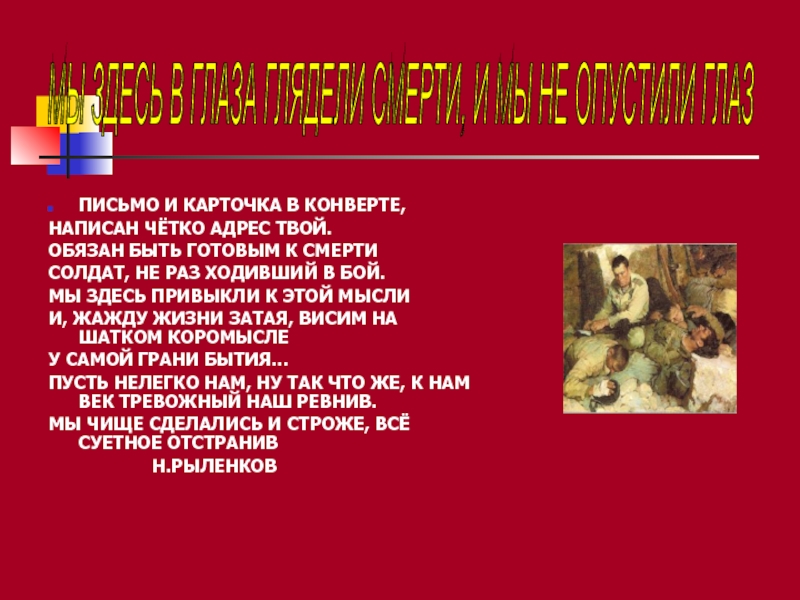МЫ ЗДЕСЬ В ГЛАЗА ГЛЯДЕЛИ СМЕРТИ, И МЫ НЕ ОПУСТИЛИ ГЛАЗ