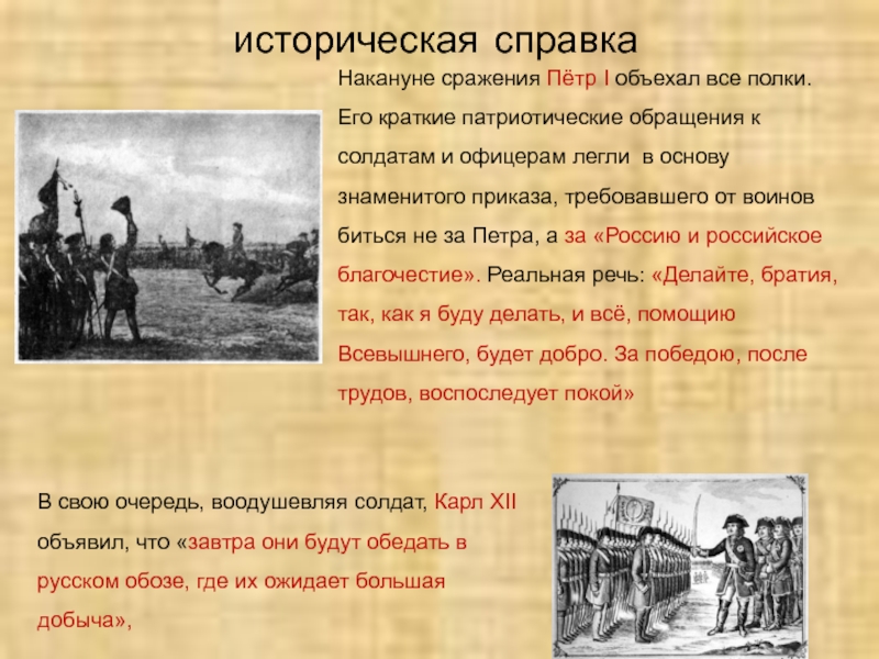 В свою очередь, воодушевляя солдат, Карл XII
