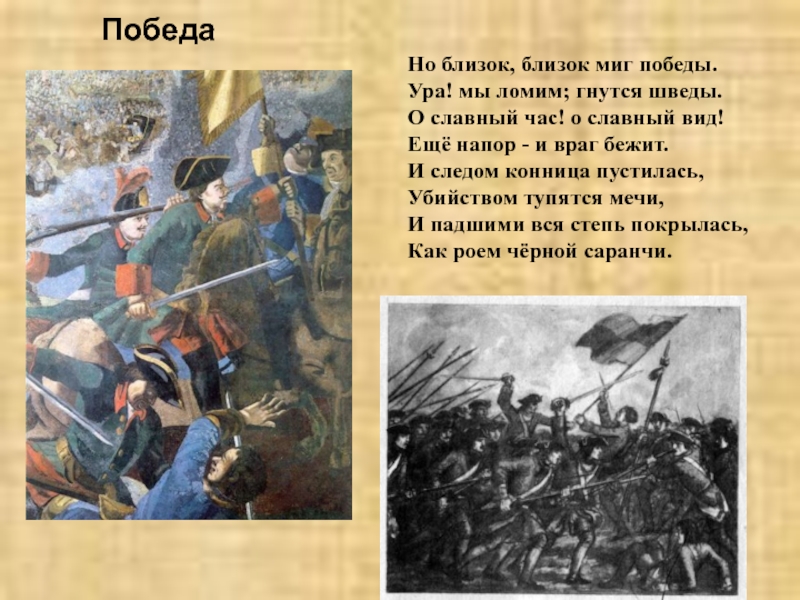И за учителей своих - за шведов, в борьбе с которыми выросла мощь русской армии при Петре I.