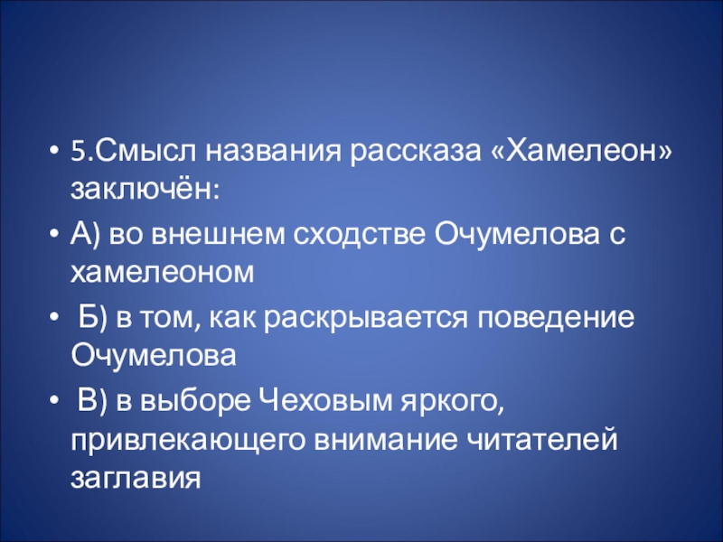 5.Смысл названия рассказа «Хамелеон» заключён: