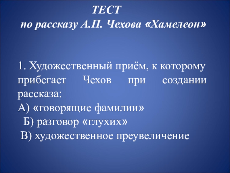 1. Художественный приём, к которому прибегает Чехов при создании рассказа: