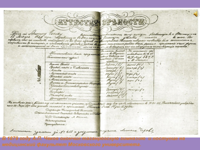 Слайд 6В 1879 году А.П. Чехов окончил таганрогскую гимназию и поступил на