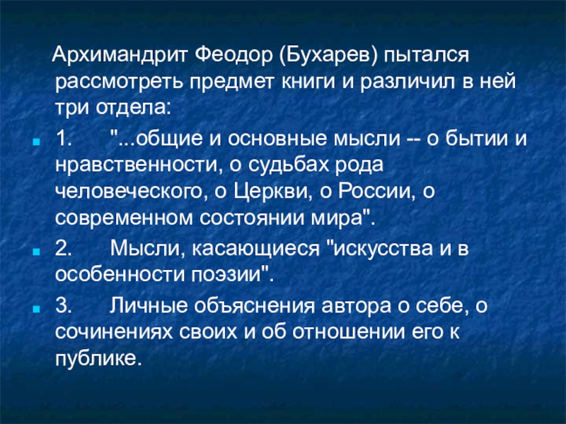 Слайд 17 Архимандрит Феодор (Бухарев) пытался рассмотреть предмет книги и различил
