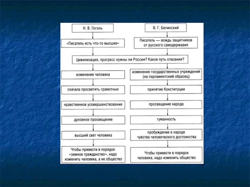 4. Почему Гоголя и Белинского можно назвать центральными фигурами в литературе 40-х годов, а их спор -- историческим?