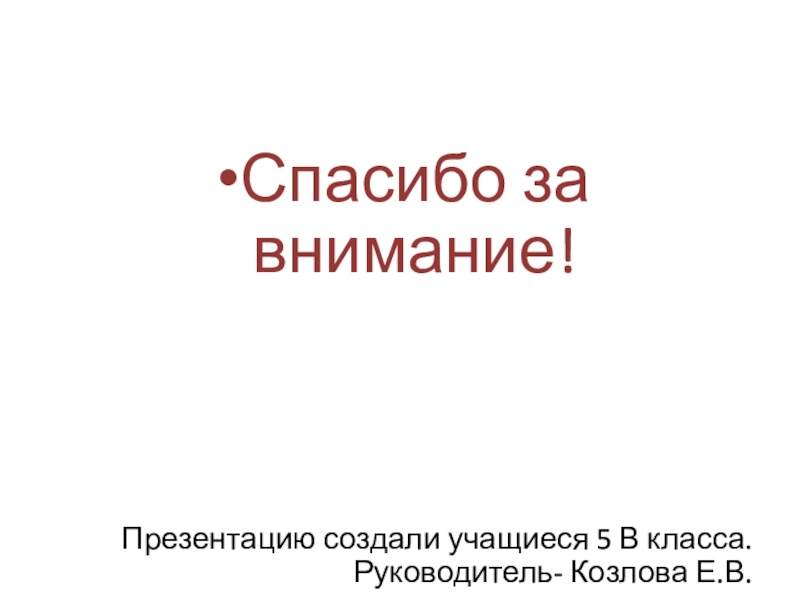 Презентацию создали учащиеся 5 В класса. Руководитель- Козлова Е.В.